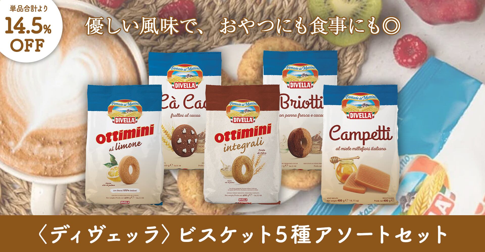 優しい風味で、おやつにも食事にも◎ディヴェッラ ビスケット5種アソートセット〈14.5%OFF〉(B605003)
