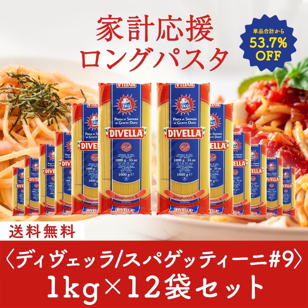 家計応援パスタセット!ディヴェッラ #9 スパゲッティーニ 1kg×12袋〈53.7%OFF&送料無料〉(B612001)