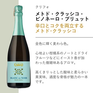 今回のセットには食前酒としてもおすすめの、イタリアで最も販売されているDOCGプロセッコとして〈VALDO / ヴァルド〉の代表作となっている【マルカ・オーロ・プロセッコ】や、イタリア最大のピノ・ネーロ産地で徹底した栽培管理を行う〈TORREVILLA / トレヴィッラ〉の高品質な【メトド・クラシッコ ピノネーロ・ブリュット】などをラインナップしました。