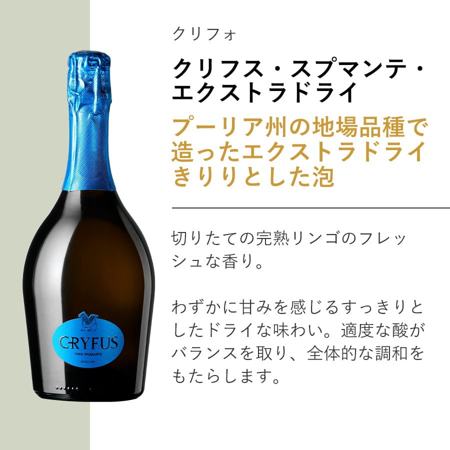 プーリア州の地場品種で造ったエクストラドライ きりりとした泡