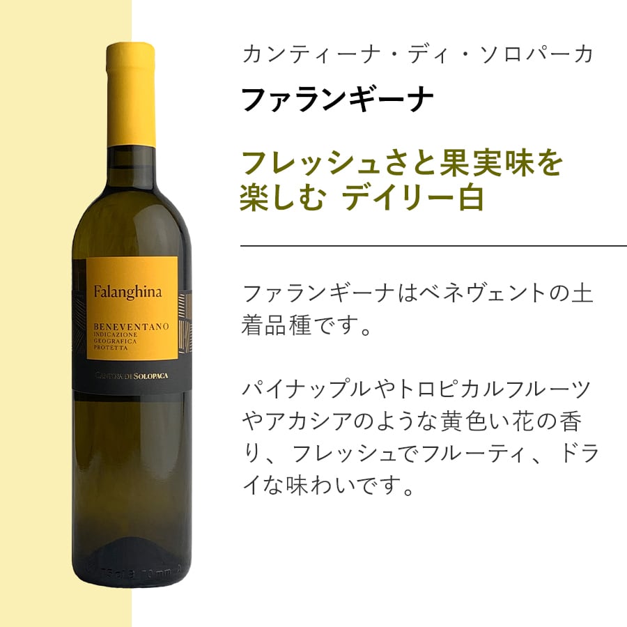 今回のセットでは、見た目でも味わいでも気分を挙げてくれる〈VARVAGLIONE / ヴァルヴァリオーネ〉の【12.5 マルヴァジア ファッション・エディション】や、カンパーニア州で最大の協同組合〈CANTINA DI SOLOPACA / カンティーナ・ディ・ソロパーカ〉が生み出す【サンニオ・ファランギーナ・ブラックラベル】などをセレクト。