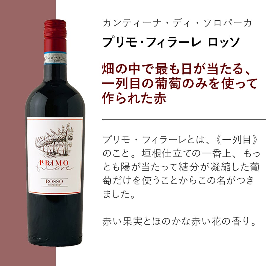 『プリモ・フィラーレ』とは、《一列目》のこと。垣根仕立ての一番上、もっとも陽が当たって糖分が凝縮した葡萄だけを使うことからこの名がつきました。