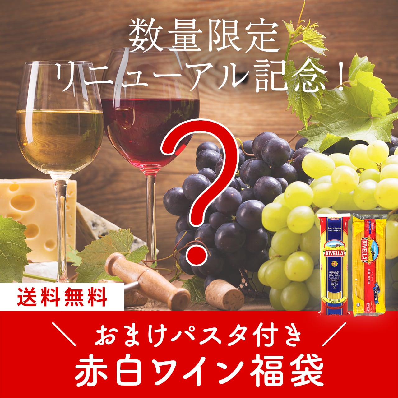 豊富な商品ラインナップからセレクトした赤白ミックスワイン11本セット、さらに定番人気パスタのおまけ付き!数量限定のスペシャルな福袋です!