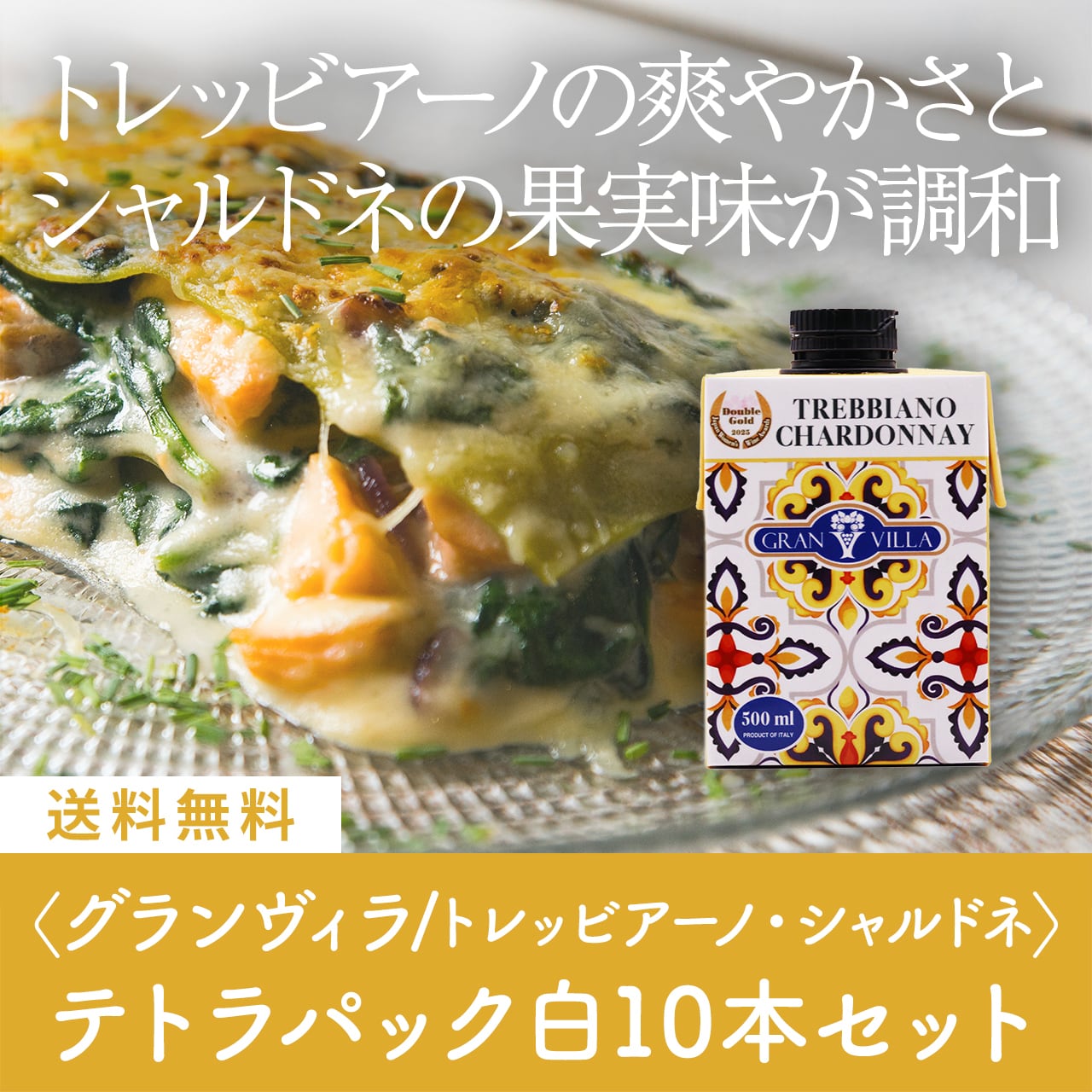 グランヴィラ トレッビアーノ・シャルドネ テトラパック 500ml×10本セット〈11%OFF&送料無料〉(B710002)