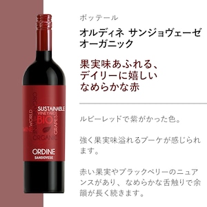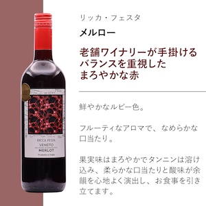 鮮やかなルビー色。フルーティなアロマで、なめらかな口当たり。果実味はまろやかでタンニンは溶け込み、柔らかな口当たりと酸味が余韻を心地よく演出し、お食事を引き立てます。