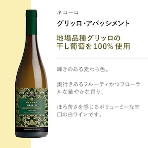 シチリア島の地場品種グリッロを遅摘みにし、樹上乾燥させた干し葡萄を100%使用しています。