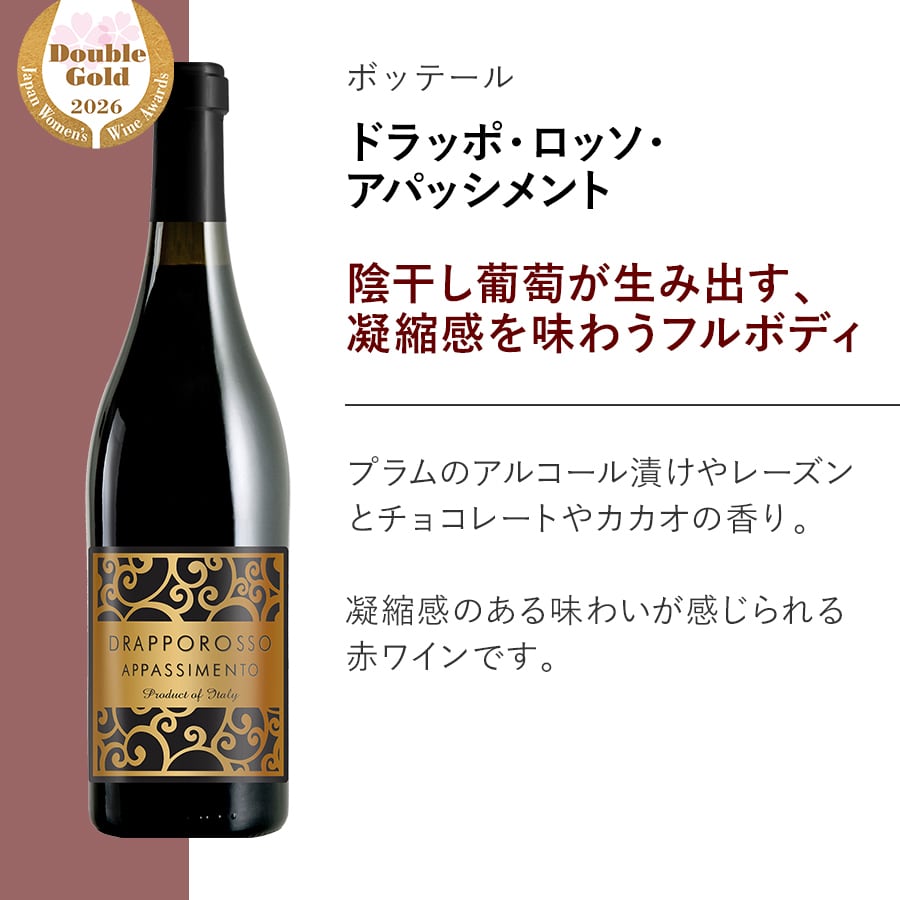『陰干し葡萄が生み出す、凝縮感を味わうフルボディ』