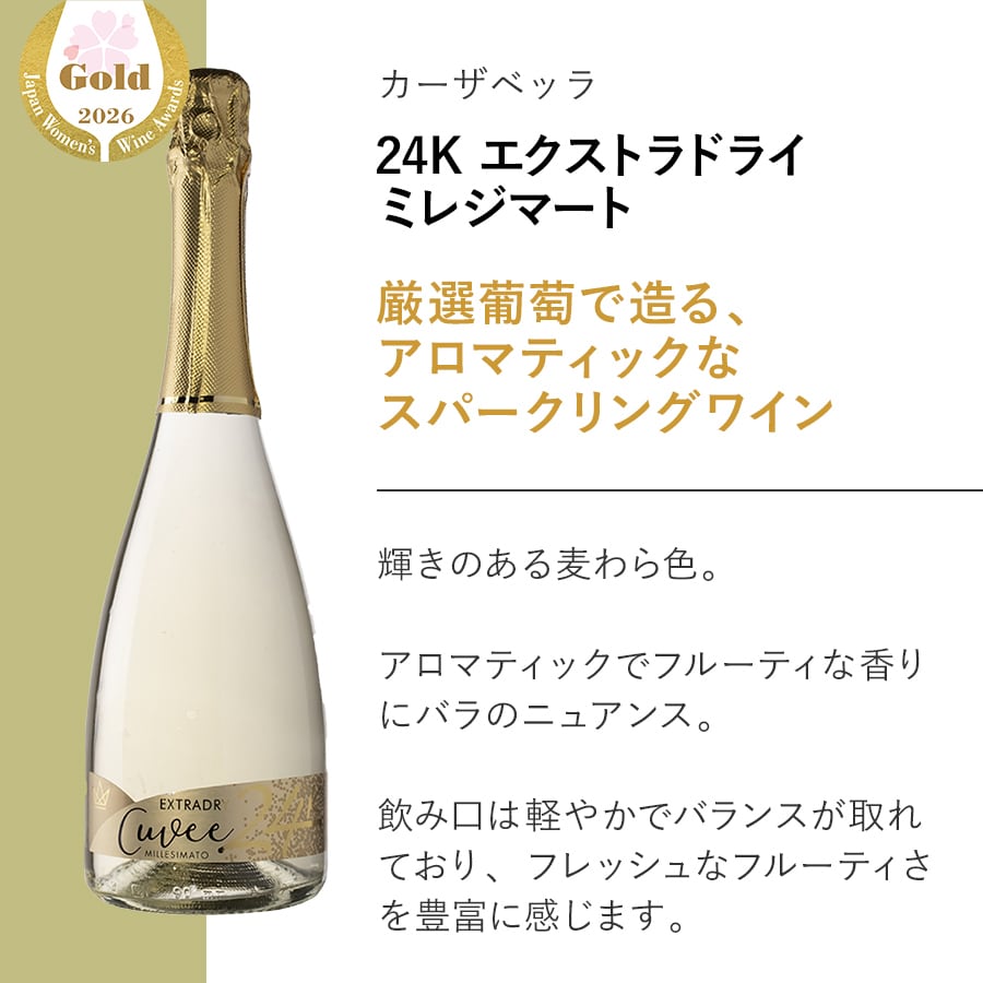 全体の85%以上が単一年の収穫葡萄で作られる《ミレジマート》であるため、【18K プラチナム ブリュット】に比べてよりヴィンテージの特徴が表現されています。