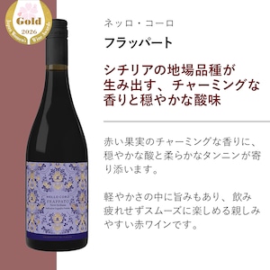 シチリアで最も古い地場品種のひとつである、フラッパートを使用。軽やかさの中に旨みもあり、飲み疲れせずスムーズに楽しめる親しみやすい赤ワインです。