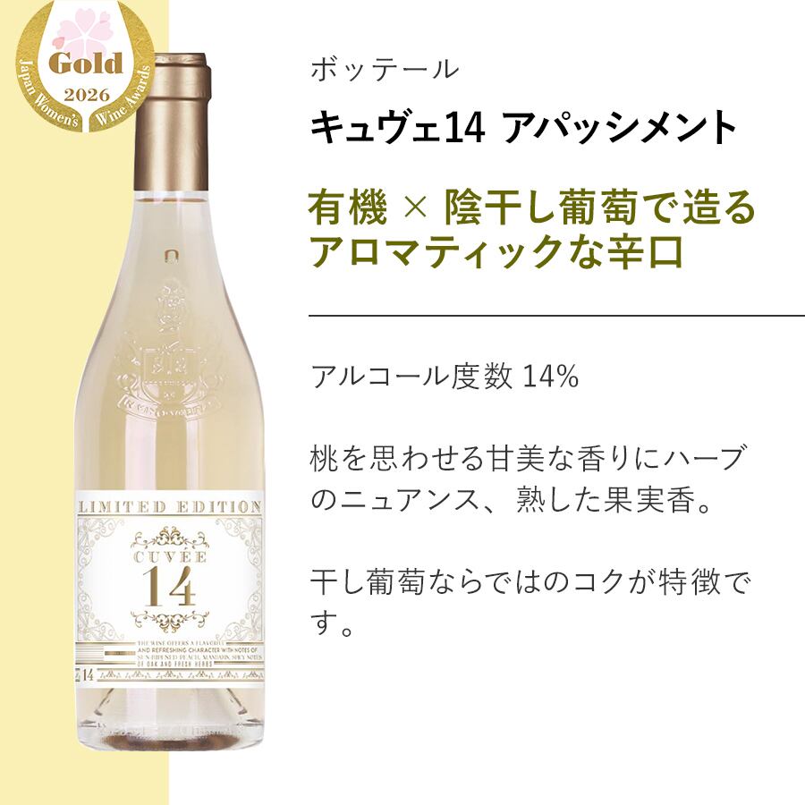 アパッシメントさせた有機白葡萄を使用したフルボディの辛口です。