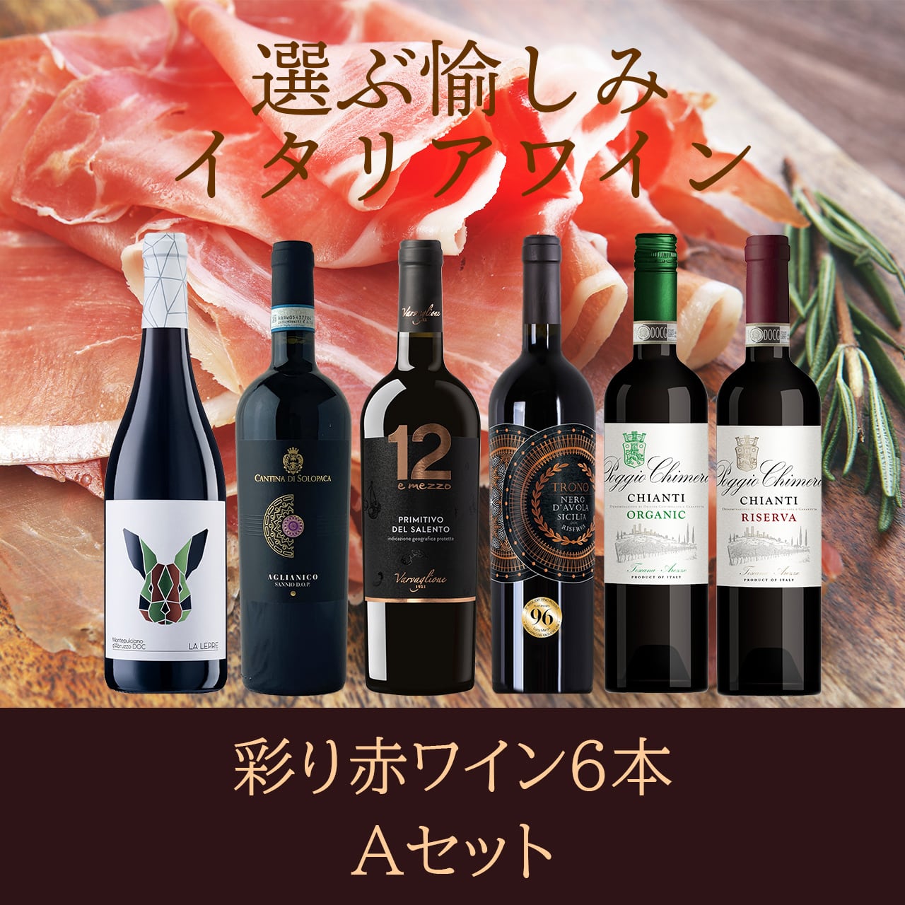イタリア各地から厳選した赤ワイン6本セットです。