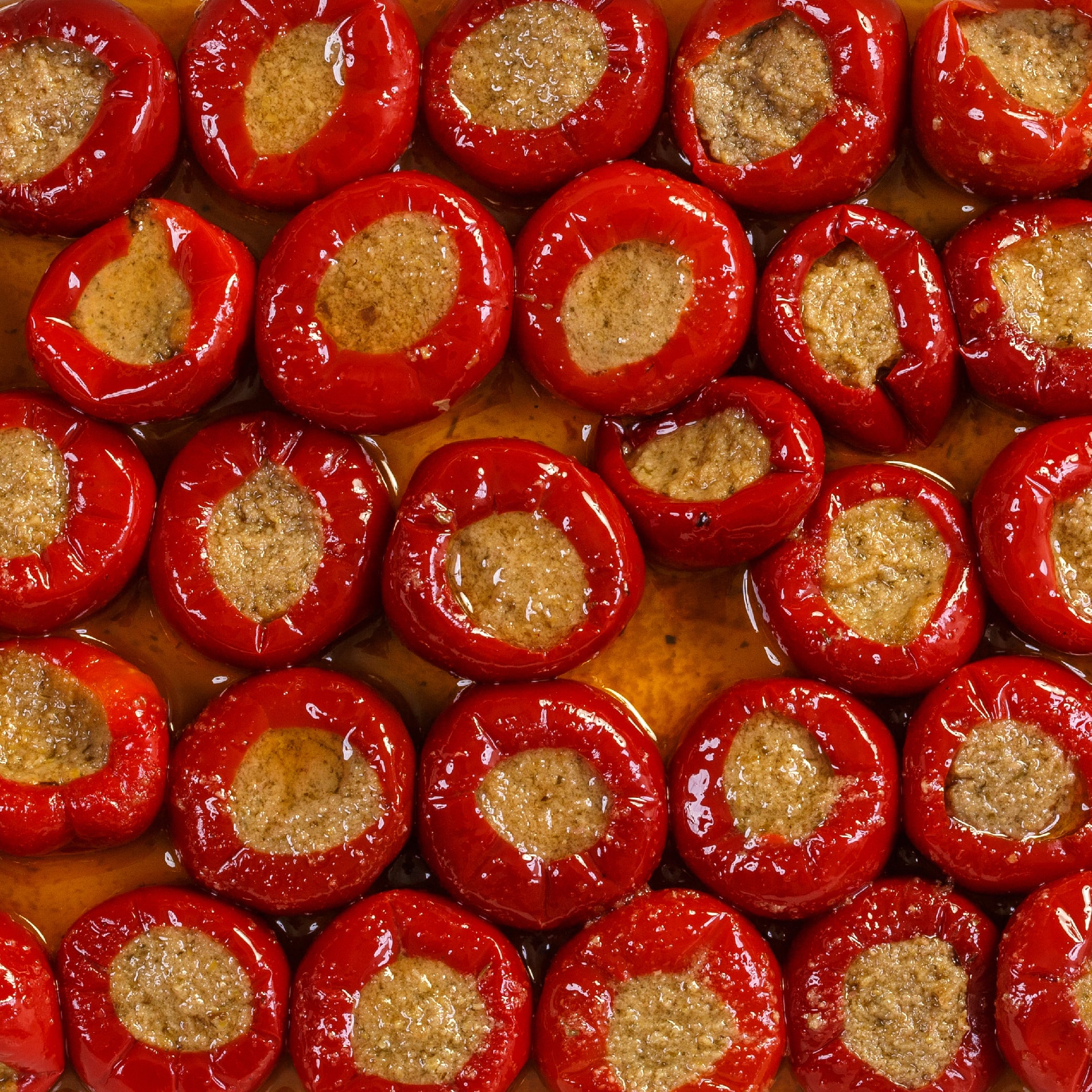 辛味の少ないチリペッパーにツナとアンチョビ、ケッパーを和えたものを詰めました。そのままアンティパストに。