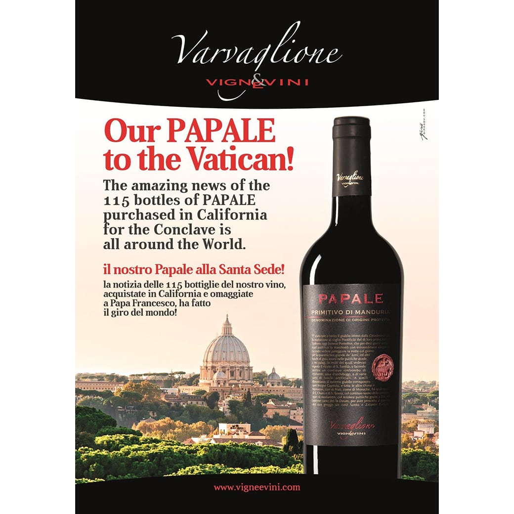 2013年にフランチェスコ教皇が選出された『コンクラーベ』時にヴァチカンへ贈られた、特別なワイン『パパーレ(=教皇)』です。かつてプーリア出身のローマ教皇・ヴェネディクト13世が所有していた土地の中で、樹齢25年以上の葡萄を厳選して収穫しています。